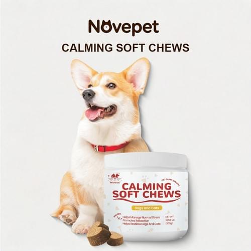 Calming soft chews for dogs and cats: effectively alleviate pet anxiety emotions, improve stress-related behavioral issues (including pacing, hiding, or aggression), and support nervous system regulation – ideal for travel, thunderstorms, or separation anxiety.